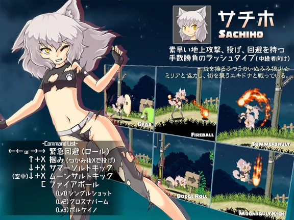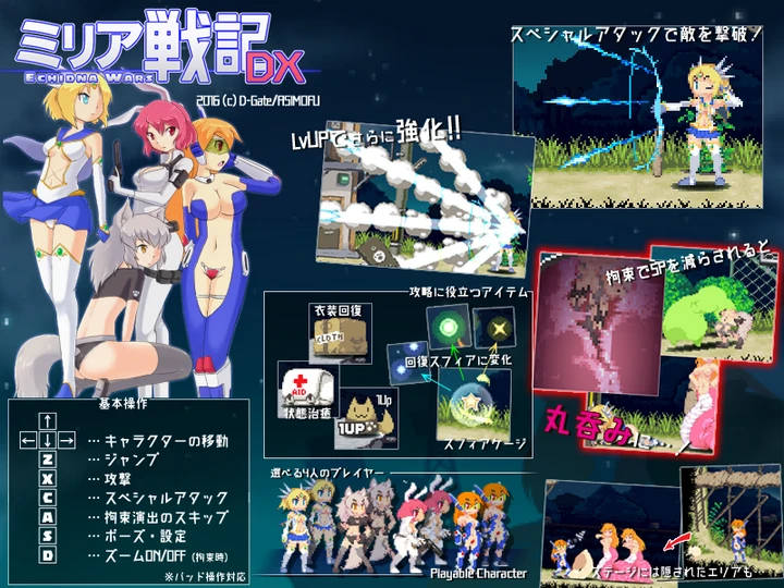 这个是类似合金弹头的横版小游戏,难度不高,流程短,碰到不同的魔物就有不同的h场景,不需要作弊码和存档的。